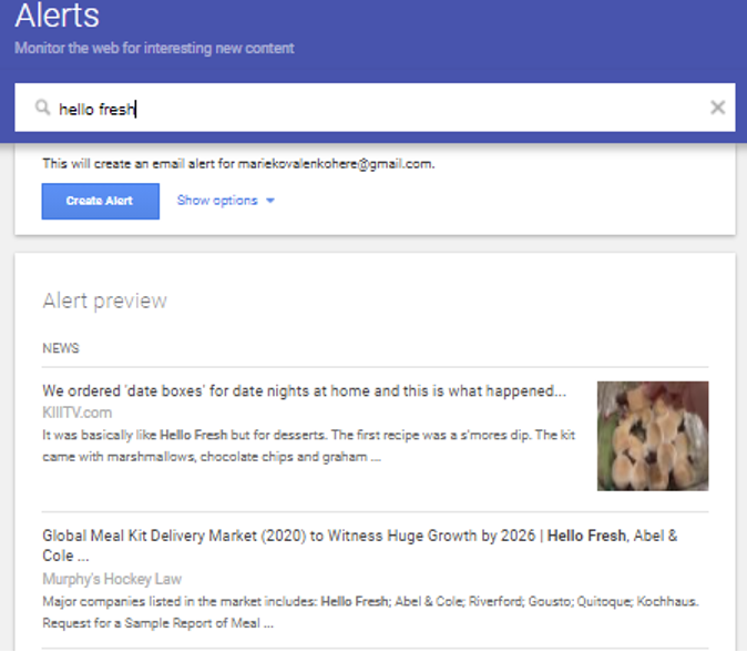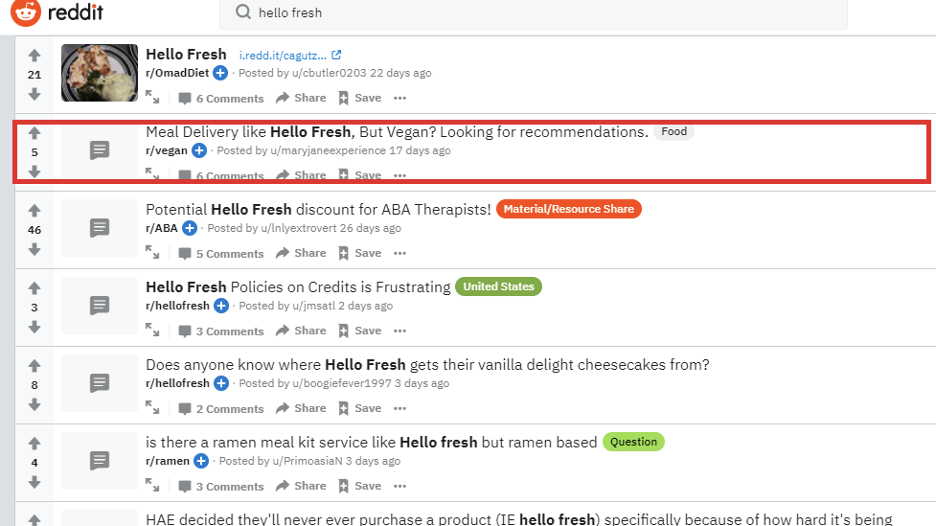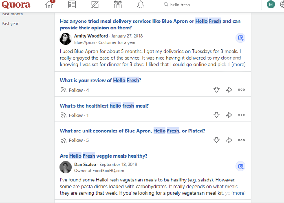 De exemplu, în exemplul de mai jos, am introdus Hello Fresh (o marcă de truse de masă) și iată ce am găsit: