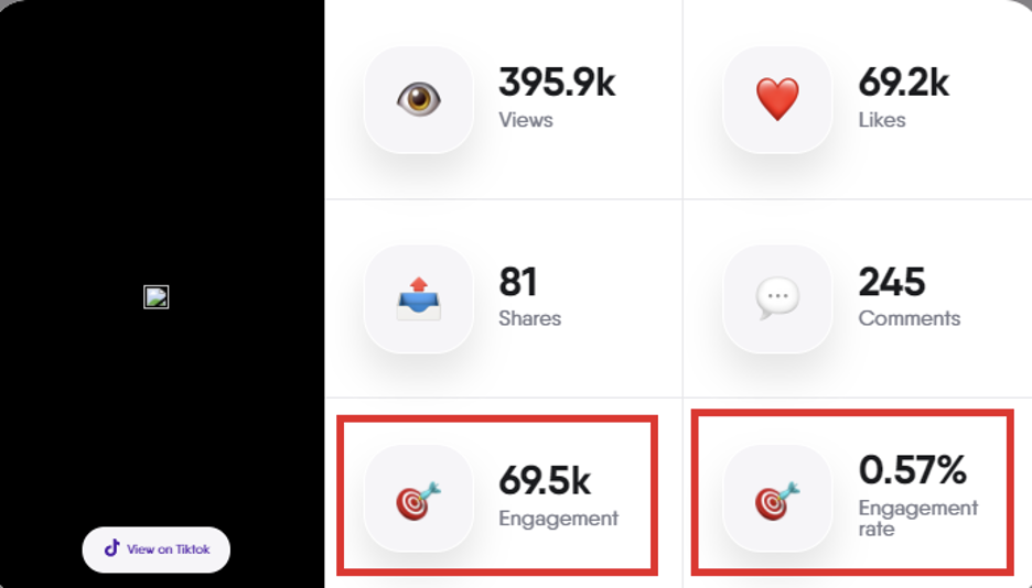 De exemplu, dacă doriți să verificați cât de implicat este publicul dvs. cu conținutul dvs. de pe TikTok, puteți obține atât datele despre acoperirea publicului, cât și rata medie de implicare pentru fiecare postare: