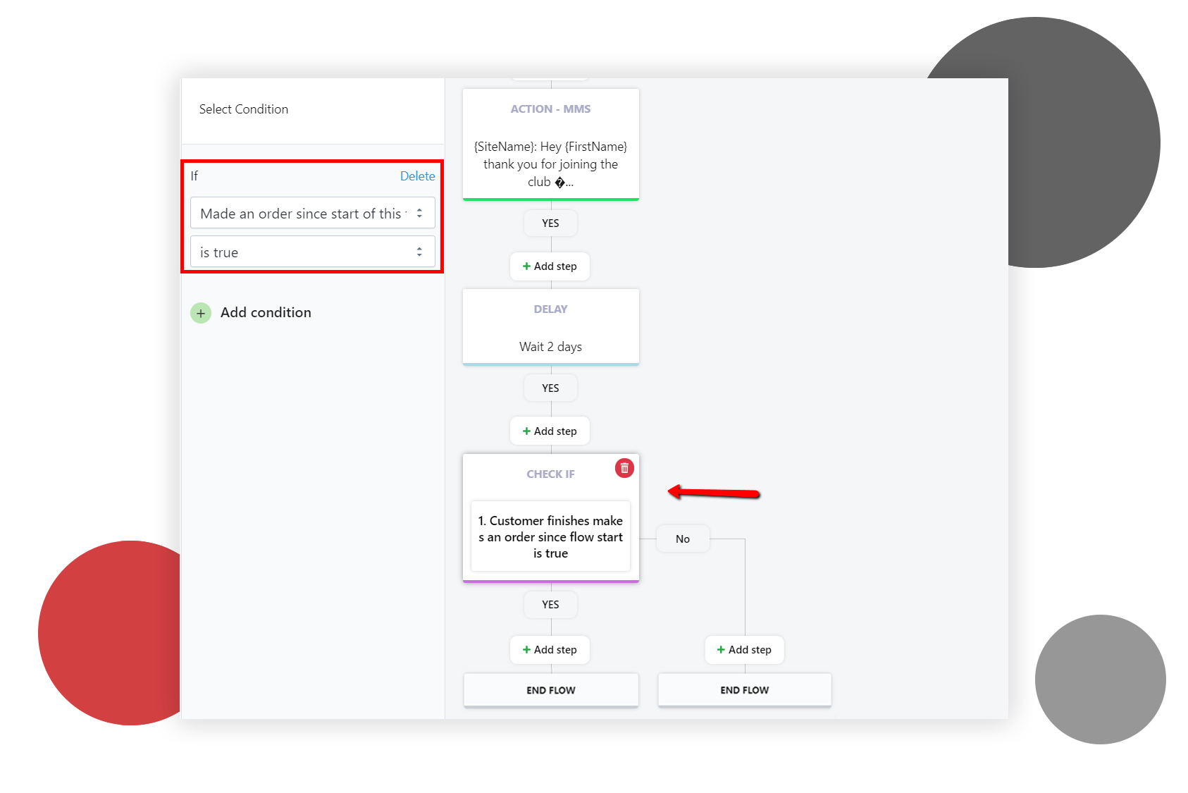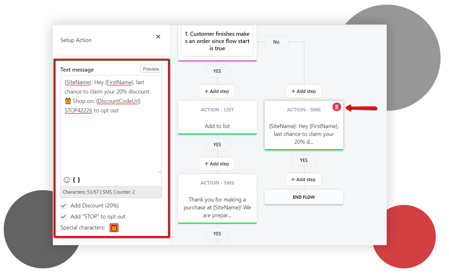 Dacă doriți să faceți un pas suplimentar, extindeți-vă fluxul verificând dacă au făcut o achiziție după acest impuls. Adăugați abonații care au făcut-o în lista dvs. de clienți implicați și pe cei care nu au cumpărat - în lista dvs. de clienți potențiali. Îi poți viza în jurul Black Friday cu o campanie de text marketing cu reduceri și mai mari. Dar dacă doriți să aflați mai multe despre cum să reactivați cu succes abonații – consultați cel mai nou articol al nostru – „Aduceți-vă clienții depășiți înapoi în timp pentru Black Friday”.