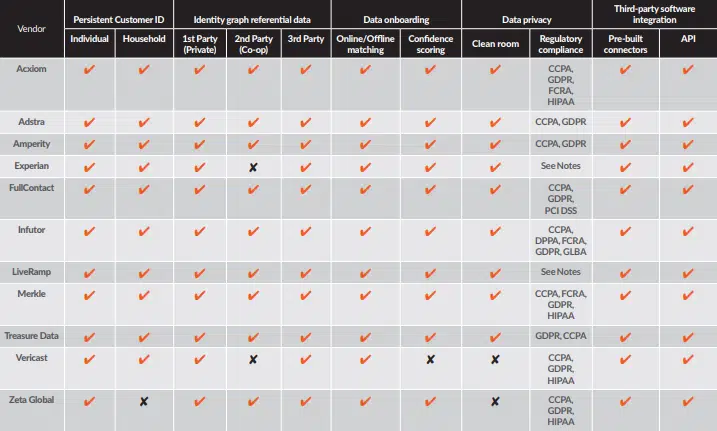 Изучите возможности платформ от таких поставщиков, как Acxiom, Experian , Infutor, Merkle и других, в полном отчете MarTech Intelligence о платформах для разрешения идентификационных данных .