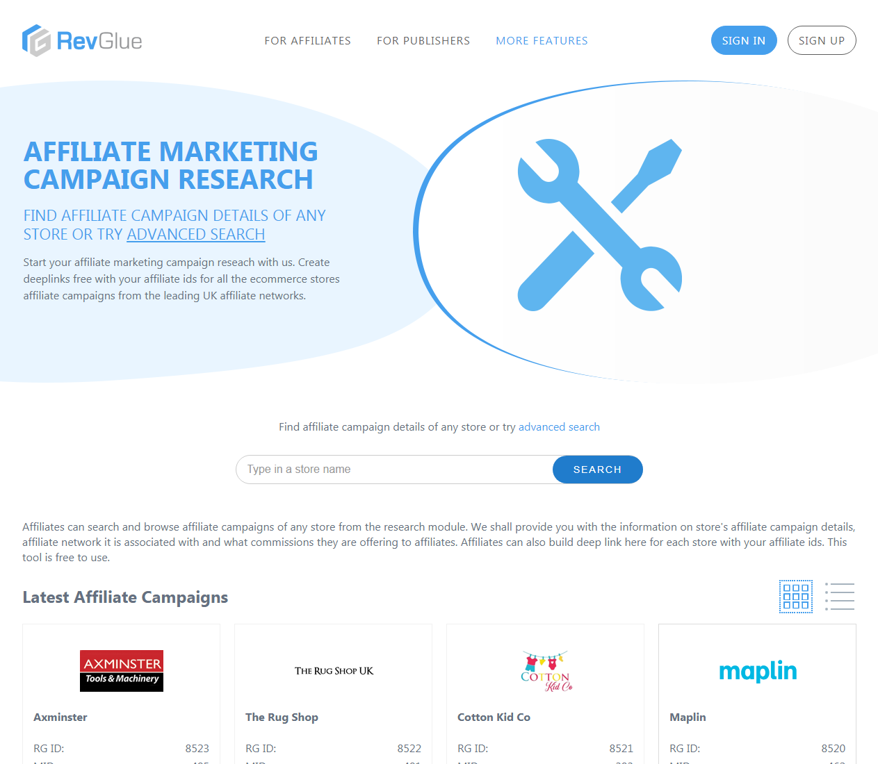 RevGlue предлагает инструменты, консультации, структурированное содержание, решения white label, индивидуальные решения и обучение для филиалов из Великобритании, которые помогают им экономить время и деньги на создании новых партнерских проектов. RevGlue упрощает аффилированный маркетинг для аффилированных лиц и помогает онлайн-издателям, таким как блоггеры, влиятельные лица в социальных сетях, более эффективно монетизировать свои веб-каналы и социальные сети.
