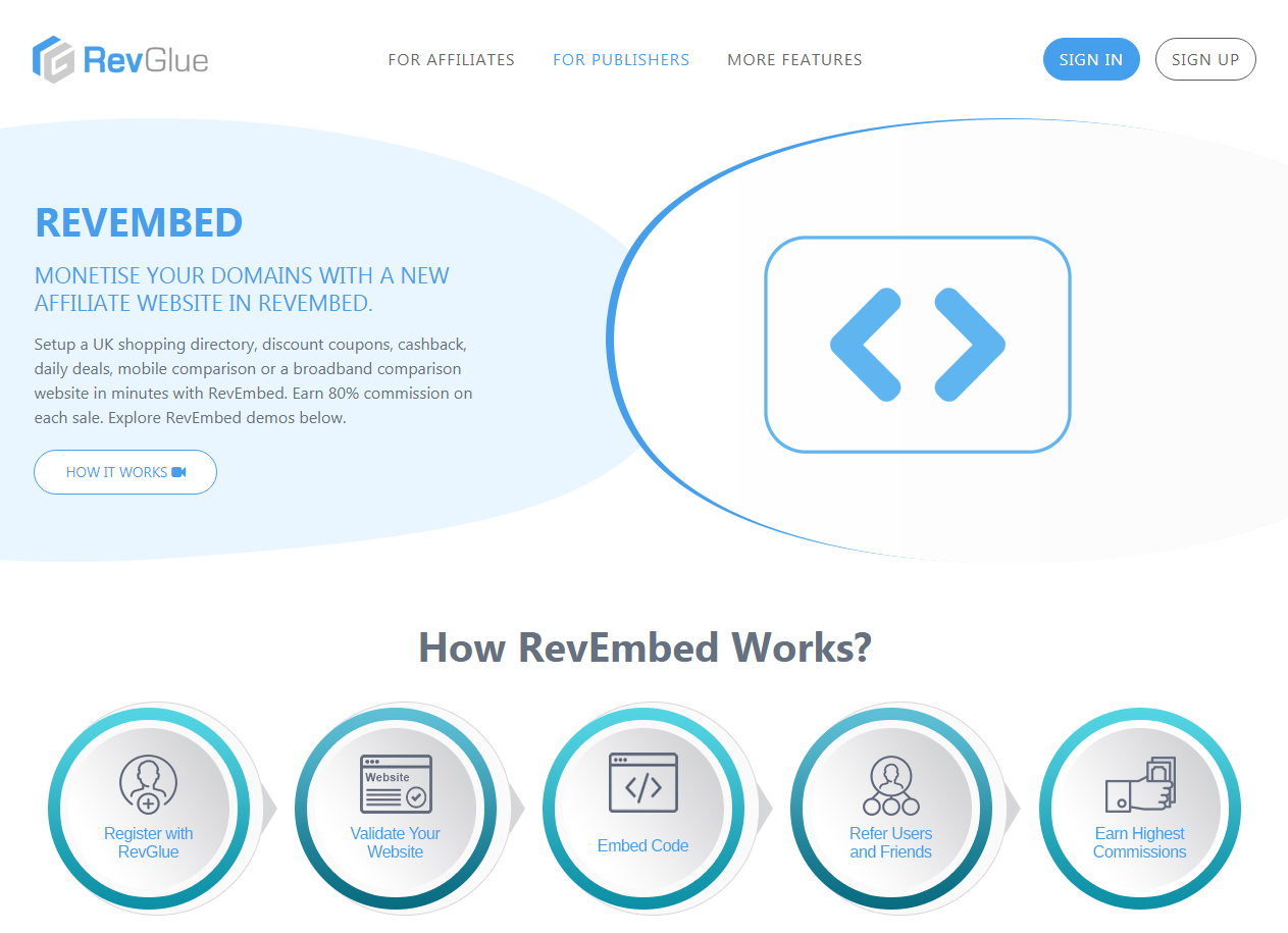 Инструменты издателя RevGlue, включая RevSocial, RevAds, RevLinks и RevEmbed, не требуют от аффилированных лиц создания учетных записей партнерской сети, поскольку идентификаторы партнеров RevGlue используются в их глубоких ссылках. Это позволяет издателям экономить время и деньги с помощью управления партнерской сетью. Эти модули можно использовать бесплатно для издателей, и они зарабатывают 80% комиссии с каждой продажи от RevGlue.
