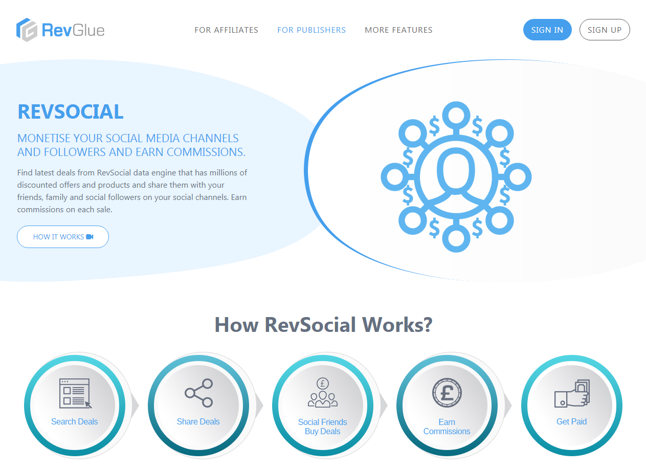 RevSocial предлагает простой механизм для влиятельных лиц в социальных сетях, чтобы найти в RevSocial продукт, который они продвигают в своих социальных сетях, и монетизировать его одним нажатием кнопки. Аффилированные лица социальных сетей могут получать комиссию с каждой продажи. RevSocial - это бесплатный инструмент, предлагающий комиссию 80% с каждой продажи. Узнайте больше о RevSocial в разделе RevGlue.com/blog.
