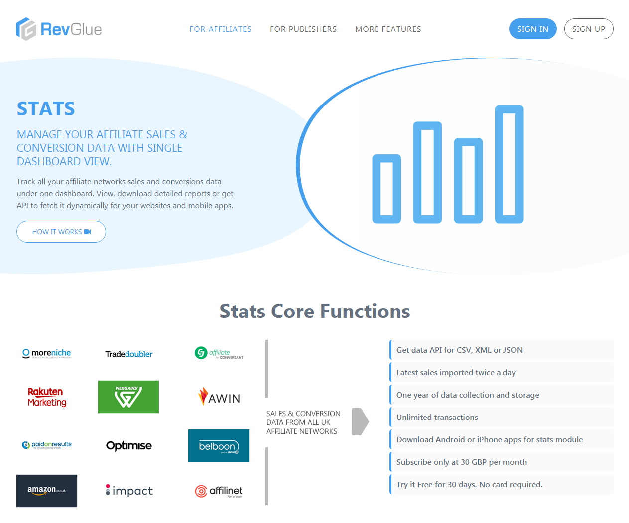 8 - Сгруппируйте все комиссии вашей партнерской сети на одной панели с помощью RevGlue Stats.