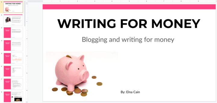 С Google Slides вы можете использовать это для создания профессиональных слайд-презентаций для компаний в вашей нише. Но если вы знакомы с Canva или PicMonkey, вы можете легко создавать собственные слайды веб-семинаров для предпринимателей и владельцев малого бизнеса.