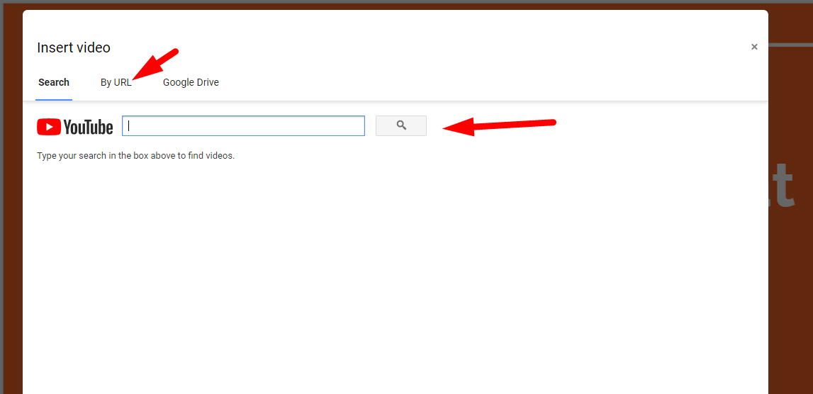 Вы можете выполнить поиск видео напрямую с помощью YouTube или нажать «По URL», чтобы вставить предпочитаемый URL-адрес видео.