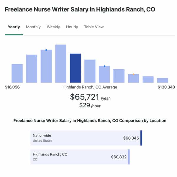 По данным ZipRecruiter, средняя зарплата писателей-медсестер составляет 68 045 долларов в год.