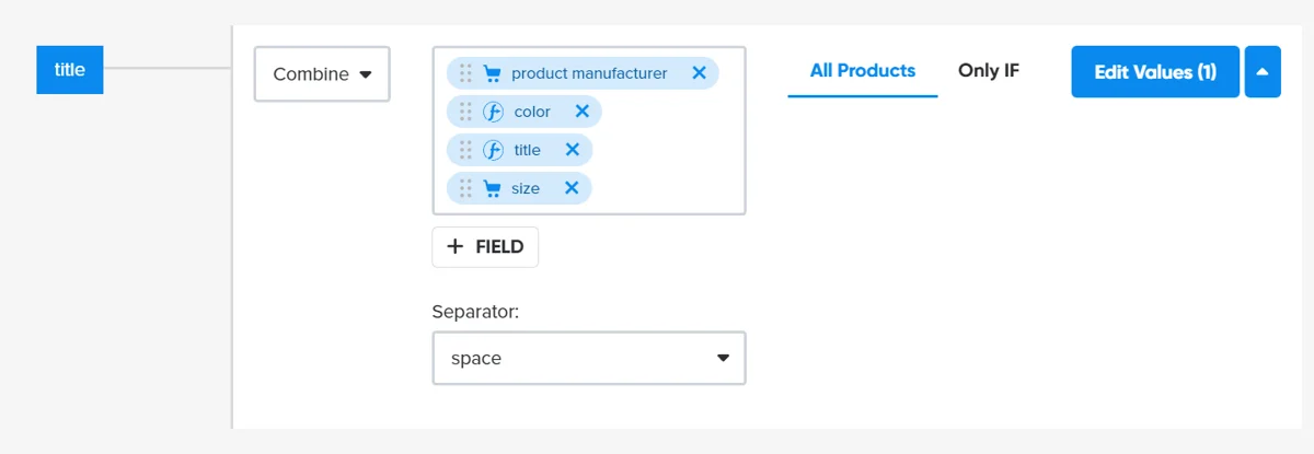 Вы можете легко составить свои заголовки с оптимизированными ключевыми словами, используя программное обеспечение для управления фидами , например DataFeedWatch.
