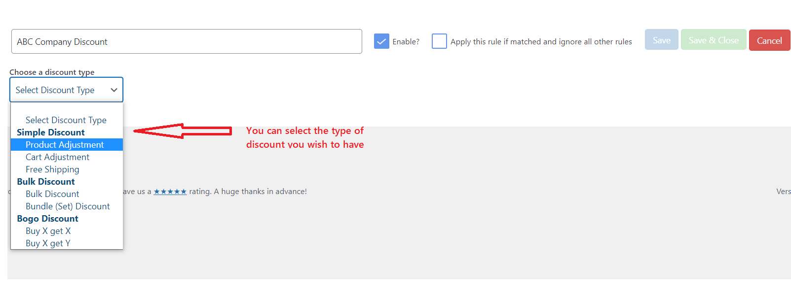 Вы можете выбрать правильный вариант в соответствии с вашими требованиями из различных доступных типов скидок.