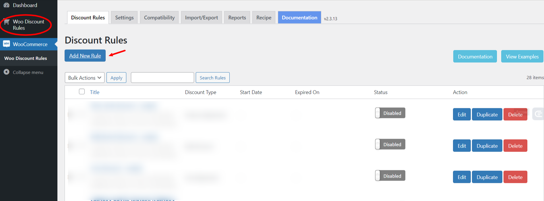 Перейдите в «Правило скидки WooCommerce» и нажмите «Добавить новое правило».