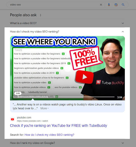 - Видео. Если ваше видео на YouTube хорошо объясняет концепцию, Google может включить одно из ваших видео в поле PAA. Видео должно хорошо показываться в результатах поиска на YouTube.