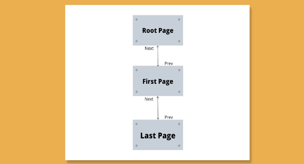 - Добавьте ссылку «предыдущая» на корневую страницу и «следующую » на последнюю страницу в качестве атрибутов.