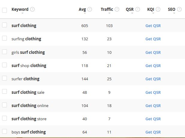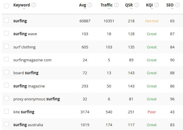 Есть несколько выводов из приведенного выше примера с использованием поискового запроса «серфинг». Во-первых, вы можете отсеять «анонимный прокси-серфинг», потому что это относится к компьютерам и Интернету. Вы также можете отказаться от «кайтсерфинга», потому что, несмотря на большое количество поисковых запросов, его KQI низок.