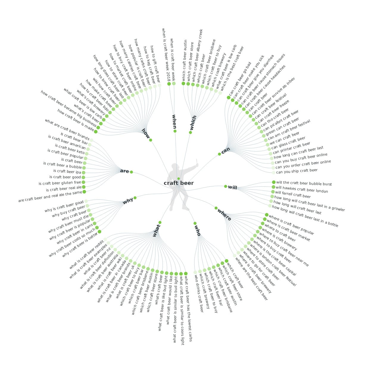 Например, вы можете работать в индустрии крафтового пива. Может быть, вы варите пиво на коммерческой основе, продаете оборудование, управляете пабом с пивоварней, продаете крафтовое пиво в Интернете или устраиваете туры с дегустацией пива. Если это так, знание того, что люди спрашивают о крафтовом пиве, поможет создать наиболее продуктивный контент. Использование поискового запроса «крафтовое пиво» на сайте AnswerThePublic дает 115 вопросов.