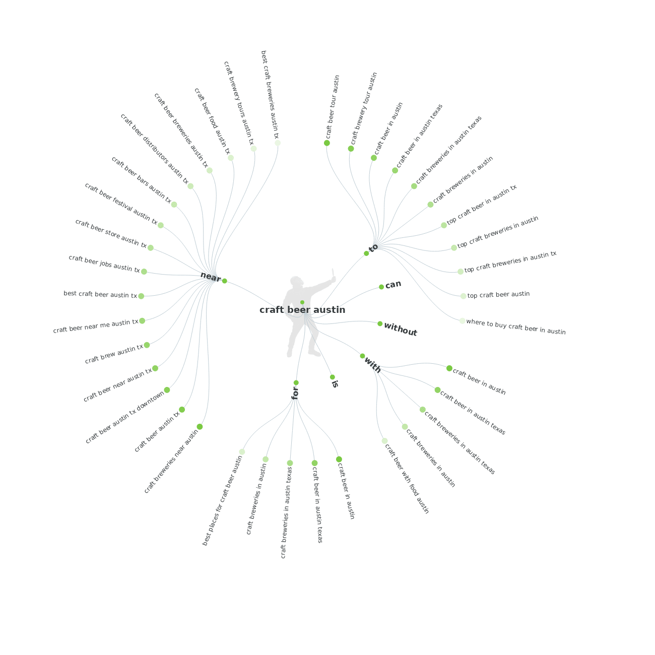 Основываясь на лучших результатах для четырех категорий предлогов, включенных выше, теперь есть четко определенные темы для создания контента, относящегося к крафтовому пиву в Остине, штат Техас: