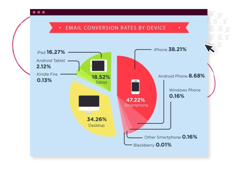 สถิติแสดงให้เห็นว่า 47.22% ของการแปลงอีเมลมาจากสมาร์ทโฟน ไม่รวม Conversion ในแท็บเล็ต ซึ่งคิดเป็นอีก 18.52%