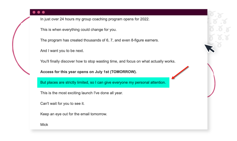 ตัวอย่างเช่น แคมเปญก่อนเปิดตัวของ Profit Copilot เน้นว่าโปรแกรมการฝึกสอนนั้นมีที่นั่งจำกัด