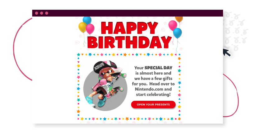 นี่คือตัวอย่างอีเมลวันเกิดจาก Nintendo