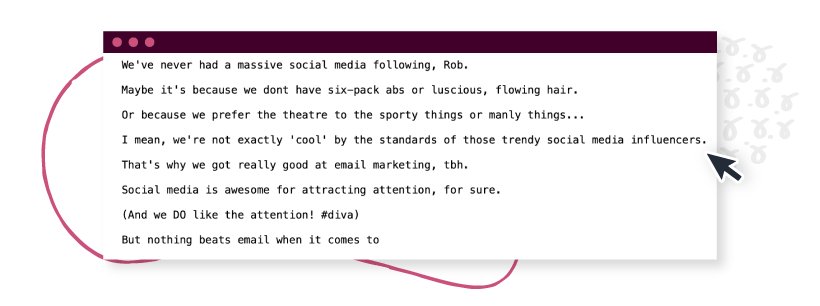 อนุญาตให้นักเขียนคำโฆษณาอีเมลมากประสบการณ์ของเราสร้างเนื้อหาอีเมลที่ไม่อาจต้านทานได้สำหรับคุณ เพื่อให้คุณสามารถมุ่งเน้นไปที่กิจกรรมทางธุรกิจหลักของคุณ