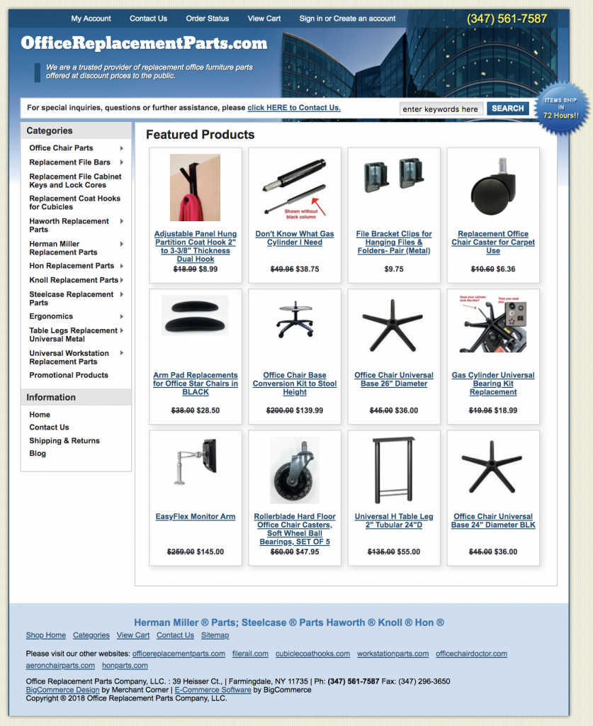 ตัวอย่างเช่น เราเพิ่งออกแบบเว็บไซต์ใหม่สำหรับลูกค้าที่ขายชิ้นส่วนอะไหล่สำหรับเฟอร์นิเจอร์สำนักงาน