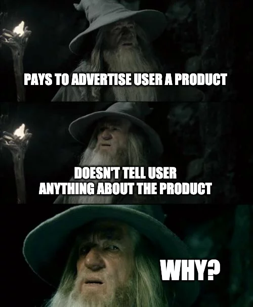 ลองนึกภาพการทำสิ่งนั้นบนโฆษณาบนเครือข่ายการค้นหาของ Google และไปยังเว็บไซต์ที่มีเพียงรูปภาพของผลิตภัณฑ์และชื่อผลิตภัณฑ์ คุณจะซื้อมันหรือไม่