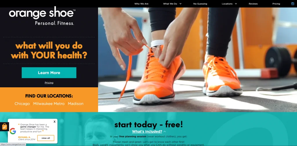 เว็บไซต์ของ Orange Shoe ให้ข้อมูลมากแต่ตรงประเด็น ทันทีมีแบบฟอร์มที่สามารถกรอกเพื่อรับเซสชั่นการวางแผนฟรี มีสถานที่ต่างๆ มากมาย ทำให้สะดวกต่อการค้นหาสถานที่ที่ใกล้ที่สุด นอกจากนี้ พวกเขายังเสนอโปรแกรมที่แตกต่างกันและต้องแน่ใจว่าได้แสดงสิ่งที่พวกเขามี บทวิจารณ์ Google บางรายการปรากฏขึ้นที่ด้านล่างของหน้าจอ ทำให้ผู้คนสามารถเห็นบทวิจารณ์ได้จากทุกที่บนหน้าเว็บ