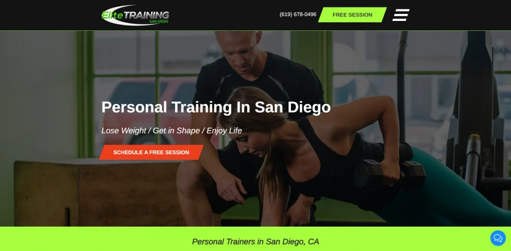 เว็บไซต์ของ Elite Training มีการออกแบบที่ยอดเยี่ยมที่ช่วยดึงความสนใจของผู้ชมมาที่หน้า มีสีสันสดใสมากมายสำหรับโทนสีที่สะดุดตา บริการบางอย่างจะแสดงในหน้าแรกโดยส่วนที่เหลือจะนำเสนอในอีกหน้าหนึ่งพร้อมคำอธิบายเชิงลึกของแต่ละบริการ นอกจากนี้ รูปภาพก่อนและหลังจำนวนมากเลื่อนดูหน้าเพจ นี่เป็นวิธีที่ยอดเยี่ยมในการแสดงให้ผู้มีโอกาสเป็นลูกค้าเห็นว่าประสบการณ์ของผู้อื่นเป็นอย่างไร
