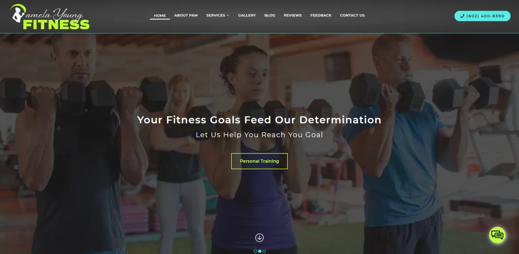 เว็บไซต์ของ Pamela Young Fitness อธิบายและแสดงภาพได้อย่างยอดเยี่ยมว่าบริษัทนำเสนออะไรและสภาพแวดล้อมแบบใดที่โรงยิมมี ใต้คลิปแนะนำ มีข้อเสนอสำหรับลูกค้าใหม่เพื่อให้ไซต์ของพวกเขาโดดเด่นกว่าที่อื่นๆ ส่วนหัวที่ติดหนึบมีประโยชน์มากในการทำให้ผู้คนสามารถเรียกดูข้อมูลและค้นหาสิ่งที่พวกเขากำลังมองหาได้อย่างง่ายดาย ที่ด้านล่างของหน้าแรก มีเวลาทำการ ข้อมูลติดต่อ และลิงก์โซเชียลมีเดีย ทำให้ผู้คนสามารถเชื่อมต่อกับพวกเขาได้มากกว่าหนึ่งทาง