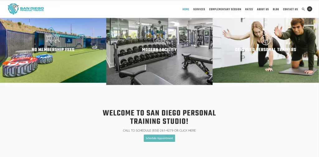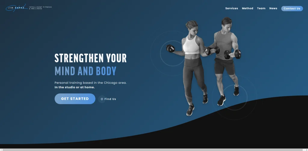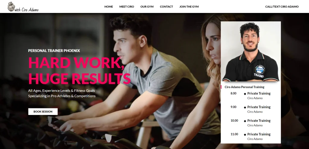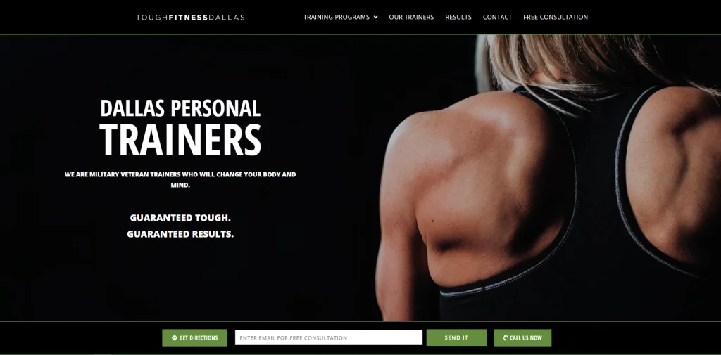 เว็บไซต์ผู้ฝึกสอนส่วนบุคคลนี้มีคลิปแนะนำที่ยอดเยี่ยมที่อวดอาคารและอุปกรณ์ทั้งหมดที่พวกเขามี แถบเลื่อนบนหน้าแรกแสดงส่วนต่างๆ ในอาคารที่มีให้ เช่น การพักฟื้น โภชนาการ กีฬาการต่อสู้ อุปกรณ์ที่กำหนดเอง และการปรับสภาพ แต่ละคนมีลิงก์ที่นำผู้คนไปยังหน้าอื่นที่มีวิดีโออธิบายพื้นที่นั้น เว็บไซต์นี้มีข้อมูลมากโดยการแบ่งปันสิ่งที่โรงยิมนำเสนอ การแนะนำผู้ฝึกสอนที่ช่วยให้ผู้มีโอกาสเป็นลูกค้าสามารถค้นหาผู้ฝึกสอนที่พวกเขาต้องการทำงานด้วยและคำรับรองจากลูกค้า