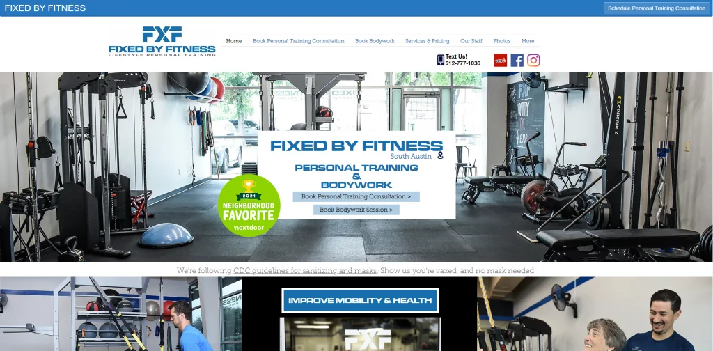 Fix By Fitness มีเว็บไซต์ที่วุ่นวาย แต่มีรูปภาพมากมายที่ช่วยแยกข้อมูล ที่ด้านบนสุด รูปภาพกำลังแสดงลักษณะของโรงยิม พร้อมวิดีโอที่แสดงบริการต่างๆ ที่มีให้ มันชัดเจนมากว่าคุณสามารถทำอะไรได้บ้างเมื่อจะทำธุรกิจนี้ นอกจากนี้ยังมีรายการเงื่อนไขทั่วไปที่ผู้อื่นเข้ามาหาและได้รับความช่วยเหลือ นี่เป็นวิธีที่ยอดเยี่ยมสำหรับผู้คนในการเชื่อมต่อและเห็นว่านี่คือผู้ฝึกสอนส่วนบุคคลที่ดีในการติดต่อด้วย มีคำรับรองจากลูกค้าที่แสดงประสบการณ์ของผู้อื่นแก่ผู้เยี่ยมชม