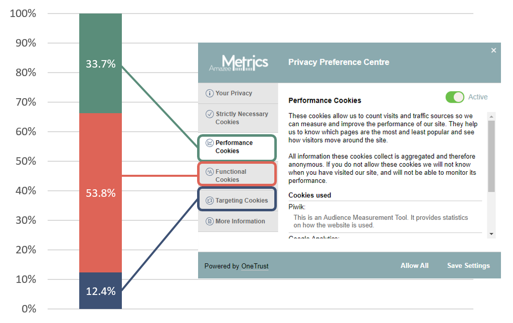 ข่าวดีก็คือผู้เยี่ยมชมมากกว่า 99% ยังคงยอมรับที่จะรวบรวมข้อมูลสำหรับการวัดผู้ชม เนื่องจากมีเพียง 0.5% เท่านั้นที่เปิดการตั้งค่าคุกกี้เพื่อปิดใช้งานคุกกี้ประสิทธิภาพ