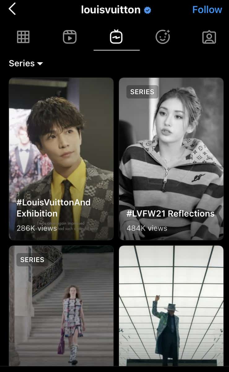 แบรนด์แฟชั่นสุดหรู Louis Vuitton ได้สร้างซีรีส์ต่อเนื่องหลายเรื่องโดยใช้ IGTV