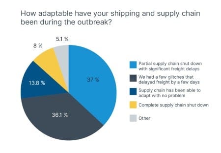 ด้วยปริมาณการสั่งซื้อที่เพิ่มขึ้น ความล่าช้าในการจัดส่งก็เพิ่มขึ้นเช่นกัน ผู้ค้าปลีกใช้เวลานานกว่าปกติ 1.5 วันในการดำเนินการตามคำสั่งซื้อ ตามข้อมูลของ Narvar (ไม่รวมความล่าช้าของบริการไปรษณีย์แยกต่างหาก)