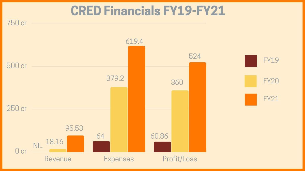 CRED สร้างรายได้จากการลงรายการผลิตภัณฑ์และข้อเสนอ และผ่านข้อมูลทางการเงินของผู้ใช้ รายได้ CRED ทั้งหมดสำหรับปีงบประมาณ 21 คือ INR 95.53 cr