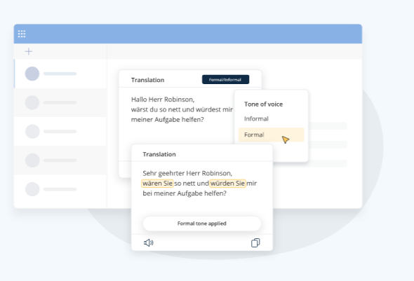 ในระหว่างกระบวนการ คุณสามารถเลือกโทนเสียงที่คุณต้องการให้ผลลัพธ์มี ไม่ว่าคุณจะเลือกเป็นทางการหรือไม่เป็นทางการ ระบบจะอัปเดตคำสรรพนามและคำที่เกี่ยวข้องในผลลัพธ์โดยอัตโนมัติ ฟีเจอร์นี้มีให้บริการในหลายภาษา รวมถึงเยอรมัน รัสเซีย โปแลนด์ และดัตช์