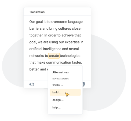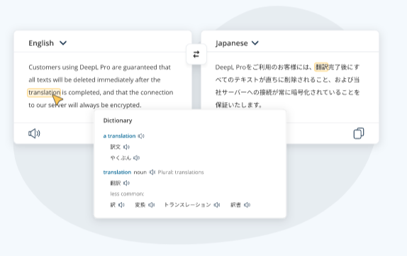 ด้วยความช่วยเหลือของโครงข่ายประสาทเทียมแบบใหม่ เครือข่าย DeepL สามารถเข้าใจความหมายที่ถูกต้องของคำที่ผู้ใช้ใส่ลงไป และแปลเป็นภาษาที่ต้องการในลักษณะที่สวยงามมาก