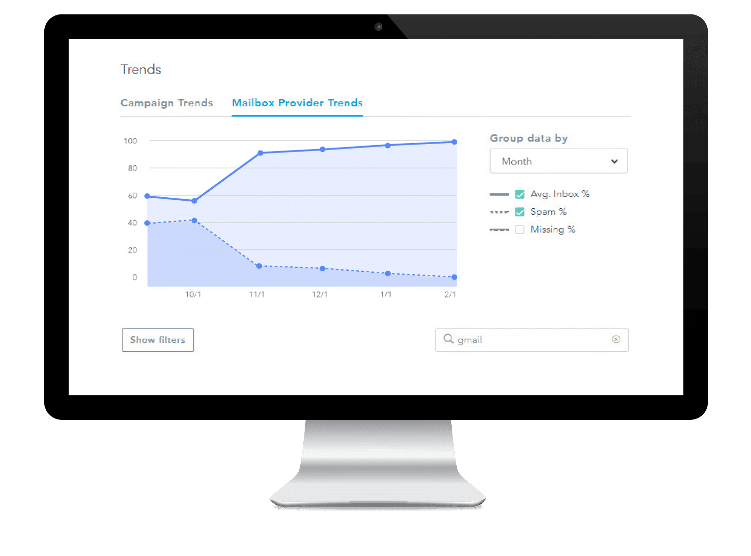 ดังที่คุณเห็นจากตารางด้านบน มีความสัมพันธ์เชิงบวกอย่างมีนัยสำคัญระหว่างที่อยู่ IP ที่ผ่านการรับรองและอัตราการจัดวางกล่องจดหมายใน Gmail ที่สูงขึ้น เราเชื่อว่าความสัมพันธ์นี้มีสาเหตุมาจาก Google สืบค้นรายการที่อยู่ IP ที่ผ่านการรับรองซึ่งเปิดเผยต่อสาธารณะของเราบ่อยครั้ง (ข้อความค้นหาหลายล้านรายการต่อวัน) ควบคู่ไปกับเซิร์ฟเวอร์อีเมลอื่นๆ และแอปพลิเคชันการกรองสแปมแบบโอเพนซอร์ส Verizon Media Group (AOL, Yahoo) ต่างจาก Microsoft และผู้ให้บริการกล่องจดหมายรายอื่นๆ ทั่วโลก เราไม่มีความสัมพันธ์ทางสัญญากับ Google