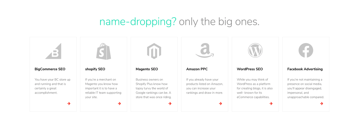 ขั้นตอนแรกในการออกแบบอีคอมเมิร์ซแบบกำหนดเองใดๆ ที่เราทำกับลูกค้าของเราคือการวางแผนงาน เราดูไซต์ที่ลูกค้าชอบและพยายามหาสาเหตุว่าทำไมพวกเขาจึงทำงานในอุตสาหกรรมนั้น และข้อความสำคัญที่ไซต์ต้องการจะสื่อคืออะไร สำหรับ 1Digital เอเจนซี่ เรามีธุรกิจจำนวนมากและครอบคลุมที่จะพูดถึง แต่ Genius eCommerce มุ่งเน้นไปที่แขนการตลาดของสิ่งที่เราทำเท่านั้น “แนวคิดคือการมุ่งเน้นไปที่สิ่งที่เฉพาะเจาะจงจริงๆ ดังนั้นการออกแบบจึงควรเรียบง่ายจริงๆ” Art, 1Digital หัวหน้านักออกแบบบอกฉัน สำหรับแรงบันดาลใจ เราดูที่ UI แบบเรียบๆ ที่ Google ใช้