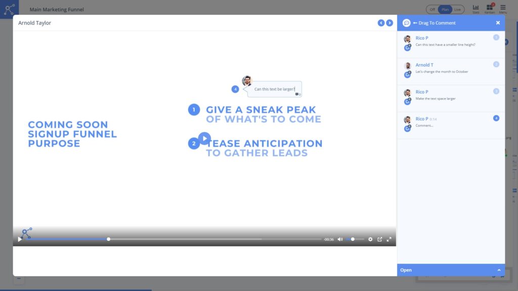 แม้ว่าคุณจะสามารถทำงานร่วมกับสมาชิกในทีมของคุณใน Funnelytics เพื่อสร้างแผนที่ช่องทางได้ MarketPlan จะช่วยให้คุณไม่เพียงแต่ทำงานร่วมกันเท่านั้น แต่ยังแชทแบบเรียลไทม์ภายในแดชบอร์ดได้อีกด้วย