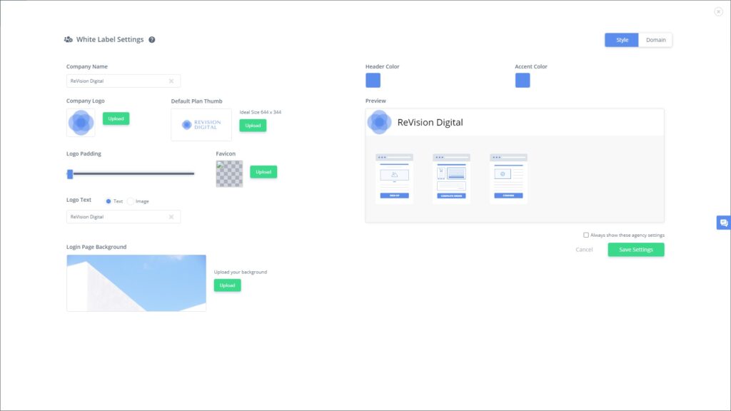 คุณสามารถปรับแต่งพื้นหลังของหน้าเข้าสู่ระบบ favicon และสีเฉพาะจุดเพื่อให้ได้รูปลักษณ์ที่สมบูรณ์ของเอกลักษณ์แบรนด์ของเอเจนซีของคุณ