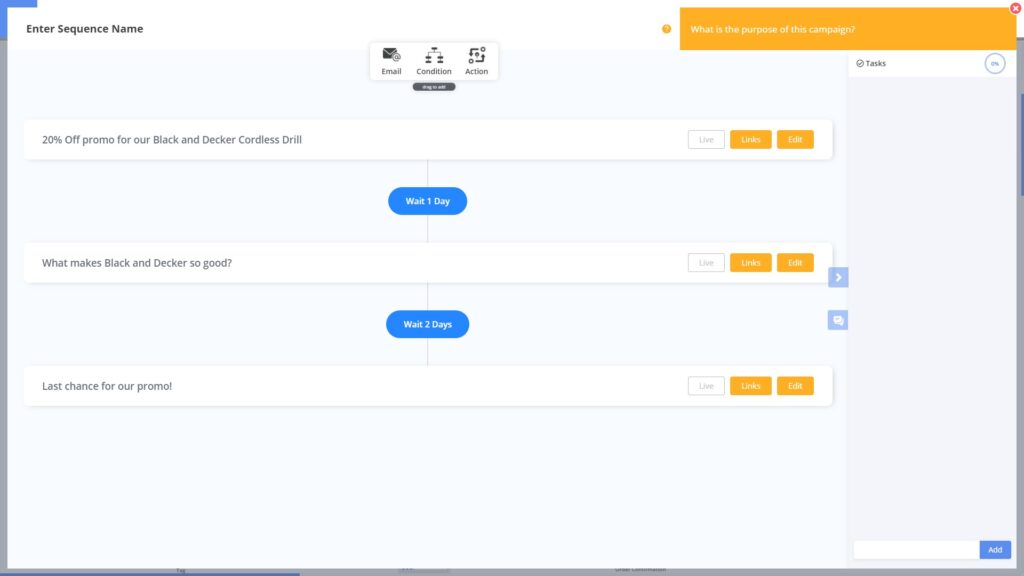 ขณะที่คุณสร้างลำดับอีเมล คุณสามารถเพิ่มเงื่อนไขและการดำเนินการไปยังส่วนเฉพาะของลำดับได้ ตามชื่อที่แนะนำ สิ่งเหล่านี้แสดงถึงเงื่อนไขที่ต้องปฏิบัติตามเพื่อทริกเกอร์การดำเนินการบางอย่างในลำดับอีเมลของคุณ
