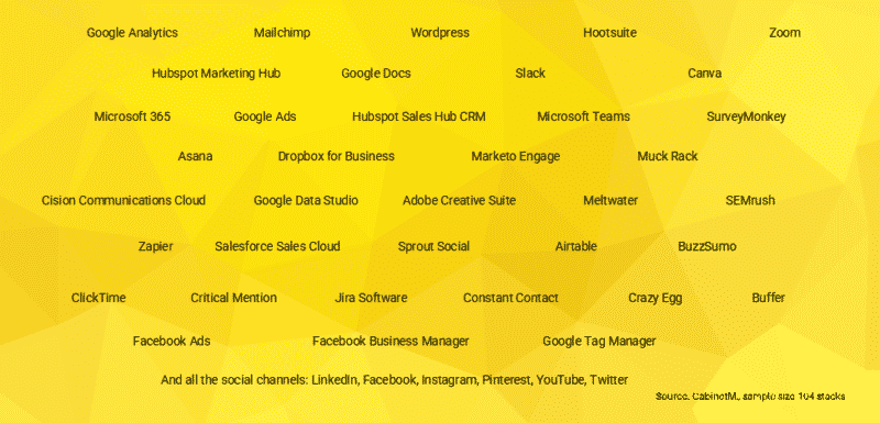 1) Martech stack ของบริษัทของฉันซึ่งมีการพัฒนาอย่างต่อเนื่องในขณะที่เราทดสอบและทดลองสิ่งใหม่ๆ