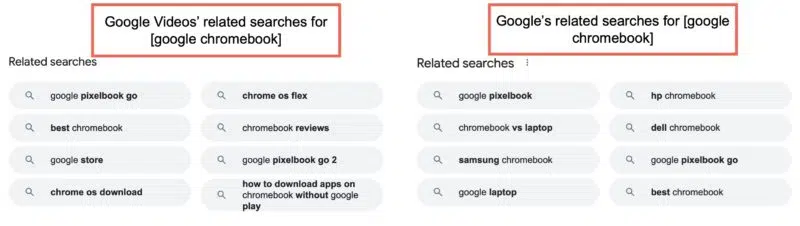 เช่นเดียวกับการค้นหาทั่วไปของ Google ส่วนวิดีโอของ Google จะสร้างคำแนะนำ "การค้นหาที่เกี่ยวข้อง" ใต้ผลการค้นหาทั่วไป ที่นี่อีกครั้ง การค้นหาเกี่ยวกับวิดีโอแตกต่างจากที่คุณจะเห็นเมื่อใช้การค้นหาหลักของ Google ซึ่งแสดงว่าผู้คนใช้วิดีโอ Google เพื่อวัตถุประสงค์ที่แตกต่างกัน: