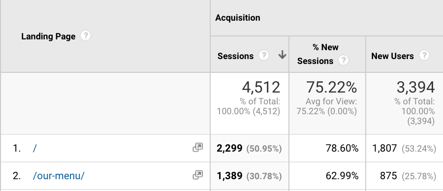 เรายังกล่าวอีกว่าการออกแบบใหม่ของเราในหน้าเมนูได้รวมเอาภาพมืออาชีพที่ใหม่กว่าและชัดเจนขึ้น โดยมีจุดประสงค์เพื่อดึงดูดสมาชิกของตลาดเป้าหมายอย่างใกล้ชิดยิ่งขึ้น หลังจากการออกแบบหน้าเมนูใหม่ของเรา WaterfrontGourmet.com มีผู้ใช้ใหม่เพิ่มขึ้นมากกว่า 40% และเซสชันเพิ่มขึ้นเกือบ 40% เมื่อเทียบกับช่วงเวลาเดียวกันของปีที่แล้ว เพื่อให้เข้าใจตรงกัน หน้า Landing Page สองอันดับแรกบนเว็บไซต์คือหน้าแรกและหน้าเมนู และทั้งคู่ก็เห็นผลในเชิงบวก
