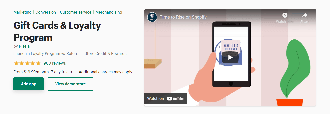 ด้วยเครดิตรีวิวกว่า 900 รายการ แอปนี้จึงเป็นหนึ่งในแอปบัตรของขวัญและโปรแกรมสะสมคะแนนยอดนิยมสำหรับ Shopify อย่างไม่ต้องสงสัย