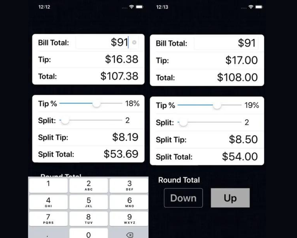 เครื่องคิดเลขทิปที่แตกต่างกันมีส่วนต่อประสานผู้ใช้ที่แตกต่างกัน อย่างไรก็ตาม ข้อมูลที่คุณป้อนและผลลัพธ์ที่คุณได้รับเกือบจะเหมือนกันในทุกกรณี