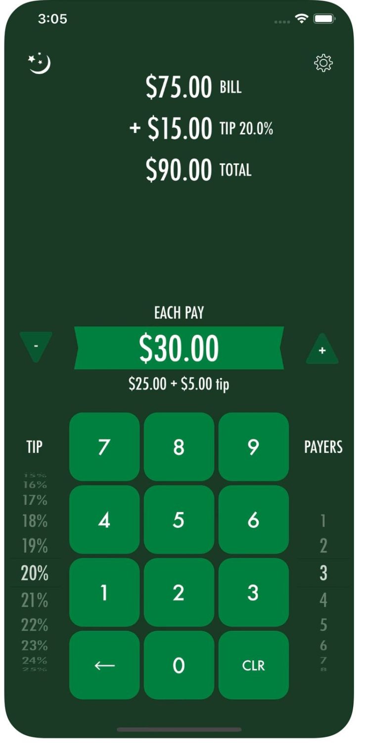 จะแสดงจำนวนเงินที่ต้องชำระทั้งหมด จำนวนเงินที่ต้องจ่ายต่อคน เปอร์เซ็นต์ทิป และจำนวนทิป แอปนี้ยังมีคู่มือการให้ทิปเพื่อช่วยให้คุณทราบว่าคุณควรให้ทิปในประเทศต่างๆ มากน้อยเพียงใด