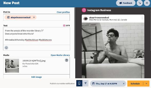 Instagram'da zamanlama özelliği var. İçeriğinizi yayınlamak istediğinizde kullanabilirsiniz. Ancak, gelişmiş değildir ve bu nedenle SocialPilot, Bulk.ly ve Hootsuite gibi sosyal medya planlama araçlarını göz önünde bulundurmalısınız.
