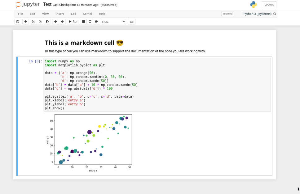 Jupyter not defterleri ile birlikte çalıştığınız kodun sonuçlarını hızlı bir şekilde görebilir, verileri çizebilir ve işaretleme blokları aracılığıyla kodunuzun belgelerini oluşturabilirsiniz.