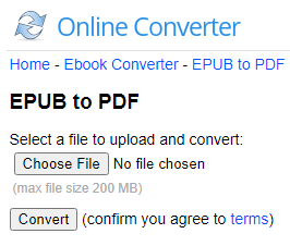 OnlineConvertor.com'u herhangi bir günlük sınır olmaksızın kullanmak ücretsizdir ancak dosya boyutunun 200MB içinde olduğundan emin olmanız gerekir. Genel olarak, OnlineConvertor.com, hassas bilgiler içeren dosyaları dönüştürmek zorunda değilseniz, EPUB dosyalarınızı PDF'ye dönüştürmek için uygun bir seçenektir.